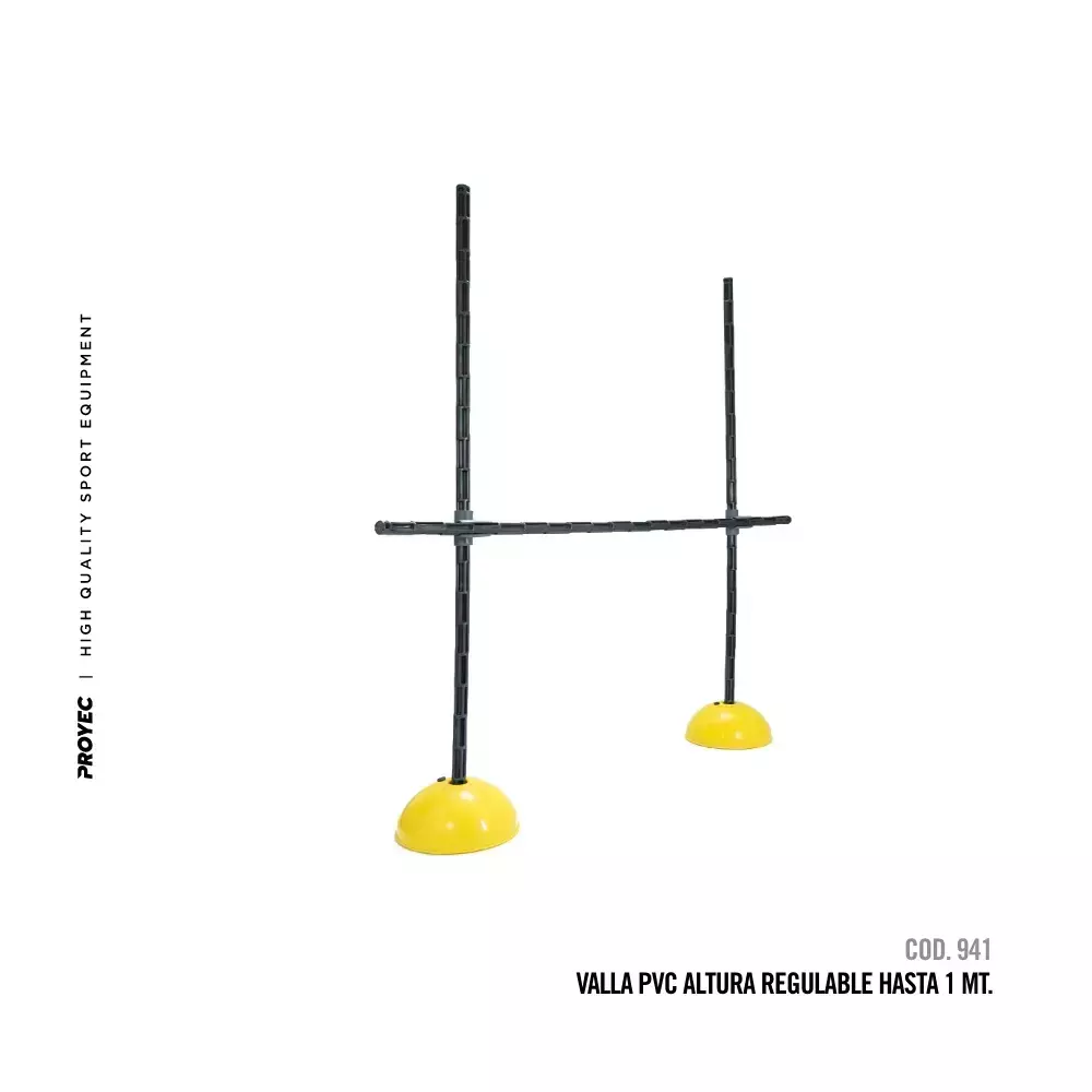 La VALLA REGULABLE 1MT PROYEC es una herramienta versátil diseñada para actividades de entrenamiento físico y rehabilitación. Su diseño ajustable permite regular la altura hasta 1 metro, facilitando ejercicios de salto, coordinación y agilidad adaptados a diferentes niveles. Fabricada con materiales resistentes, asegura durabilidad y estabilidad en cada uso. Ideal para uso en gimnasios, centros deportivos o entrenamiento en casa, contribuye a mejorar la capacidad atlética y la recuperación funcional.